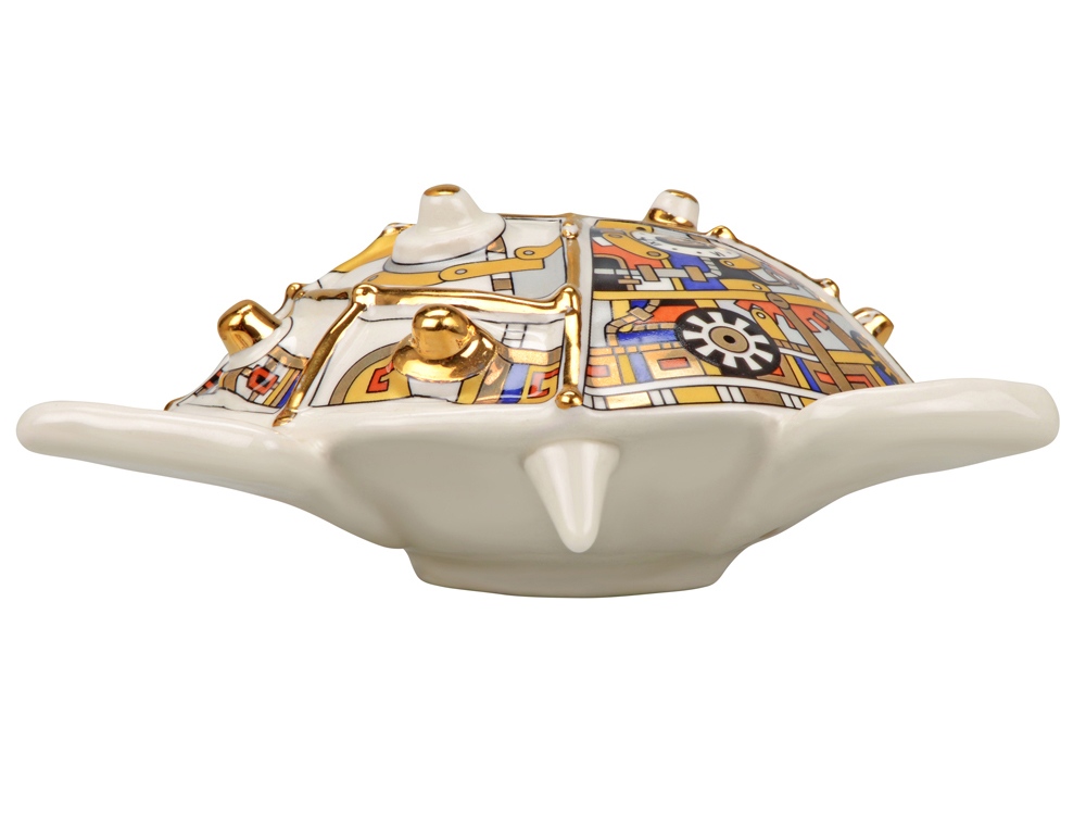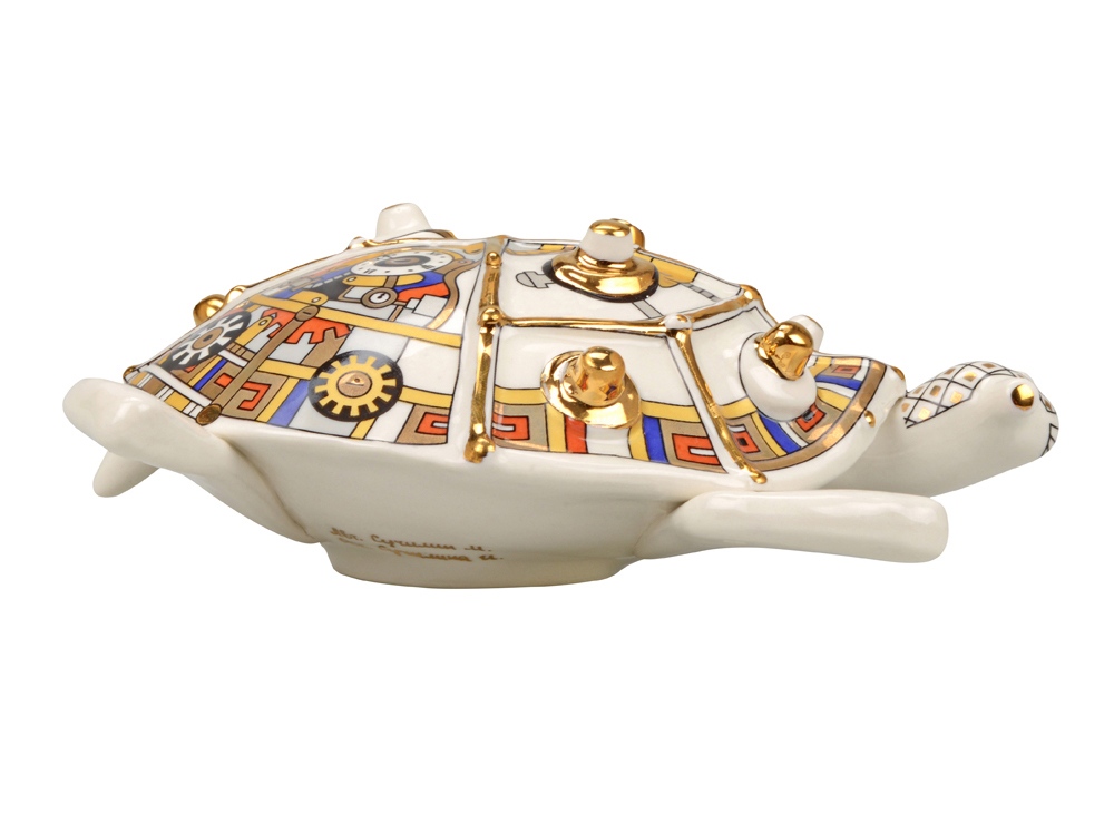 А вы знали, что черепаха - это символ достатка и благополучия? Скульптура Черепаха - это великолепный символический подарок с уникальной ручной росписью, выполненный в стиле стимпанк. Представьте себе мир, где паровые машины и другие ретро-технологии не исчезли, а достигли высочайшего развития. Так и выглядит стимпанк! Неповторимые формы, применение ручной работы необычного геометрического орнамента в комбинации с высокой техникой мазка дают изделиям Арт–Модерн керамики оригинальный колорит и притягательность, а небольшой объем производства и индивидуальная роспись делают изделия исключительными. Внимание! Данное изделие относится к категории повышенной хрупкости. Для обеспечения его целостности и безопасной транспортировки настоятельно рекомендуется использование обрешетки. Обрешеточная упаковка является обязательной при доставке, и компания Oasis не несёт ответственности за повреждения, возникшие в результате ненадлежащей упаковки или транспортировки без обрешетки.