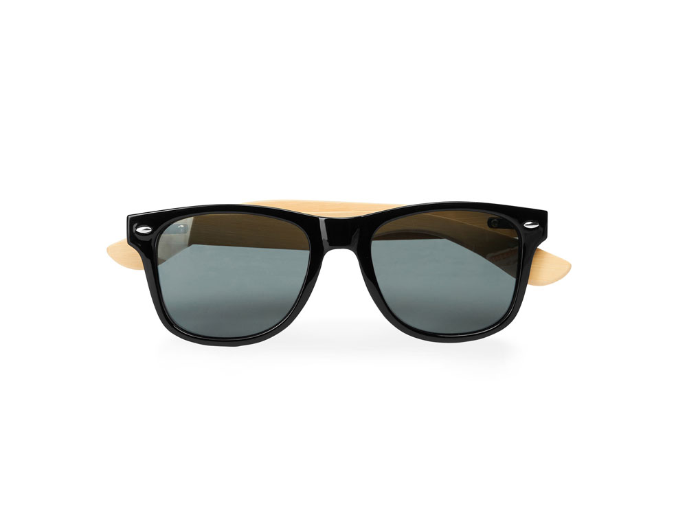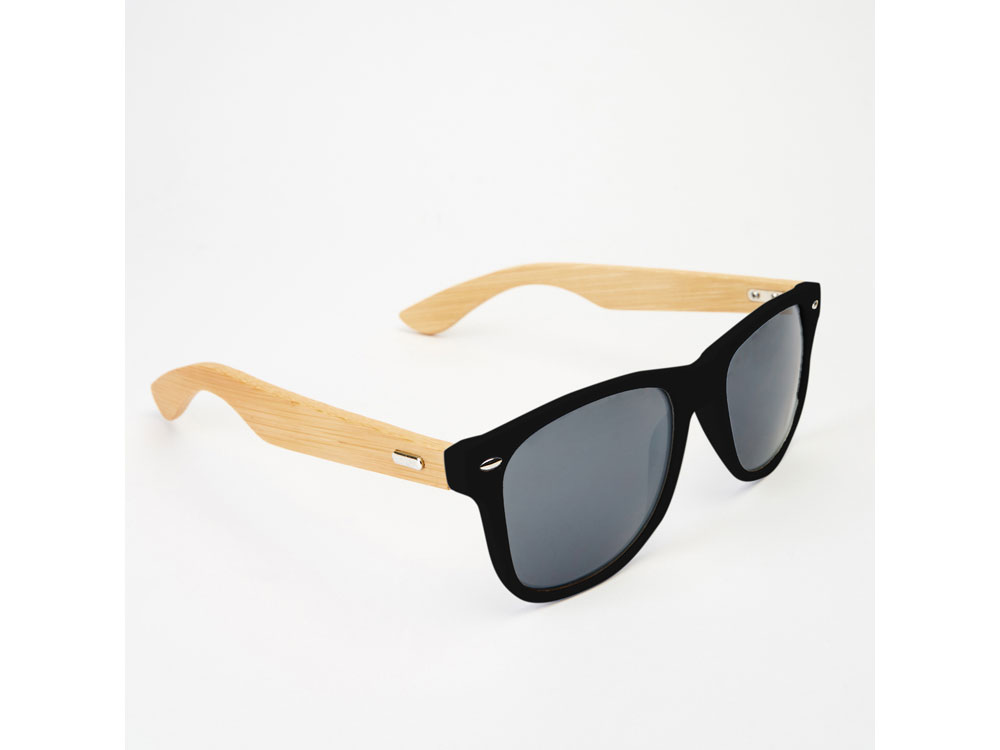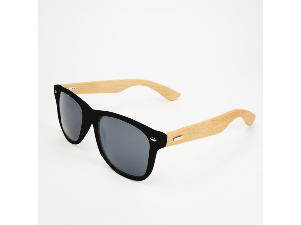 Солнцезащитные очки привлекательного дизайна с глянцевой оправой и дужками из натурального бамбука. Линзы с защитой UV400.