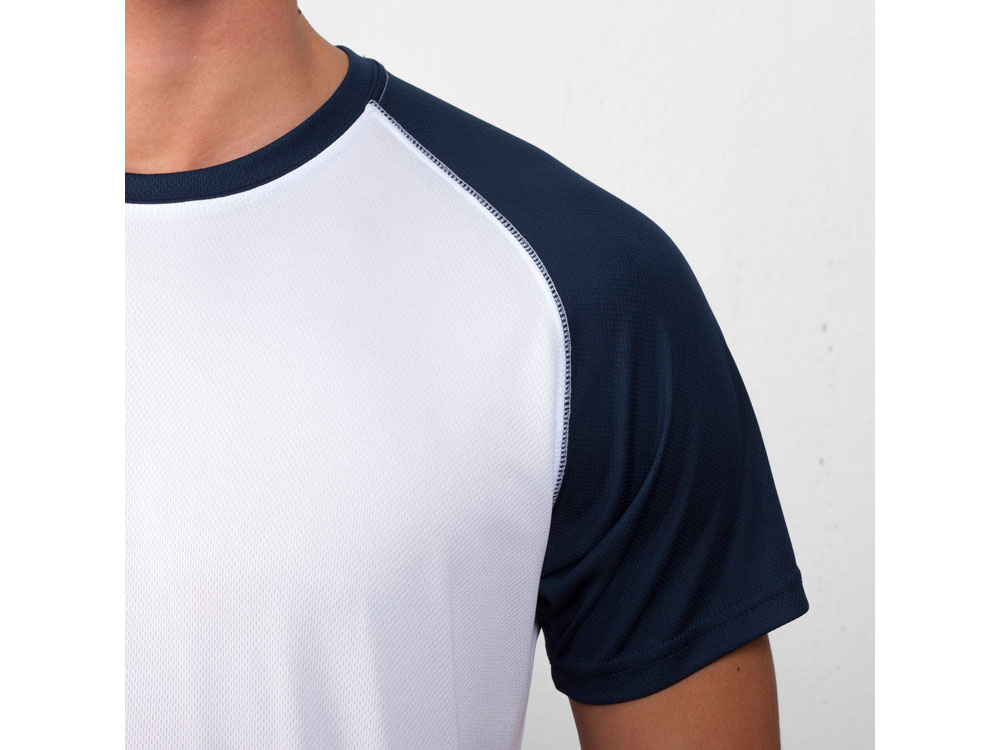 Спортивная футболка с контрастным рукавом реглан. Круглый вырез горловины с контрастной тесьмой. Технологическое дышащее полотно. В ассортименте так же представлена аналогичная детская модель Indianapolis