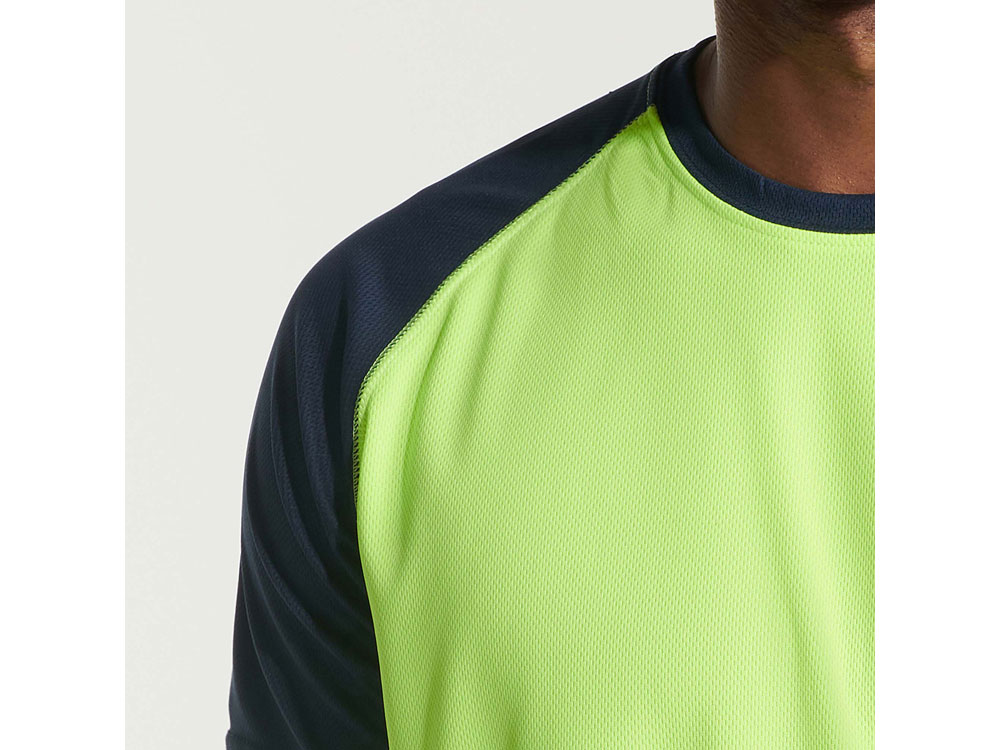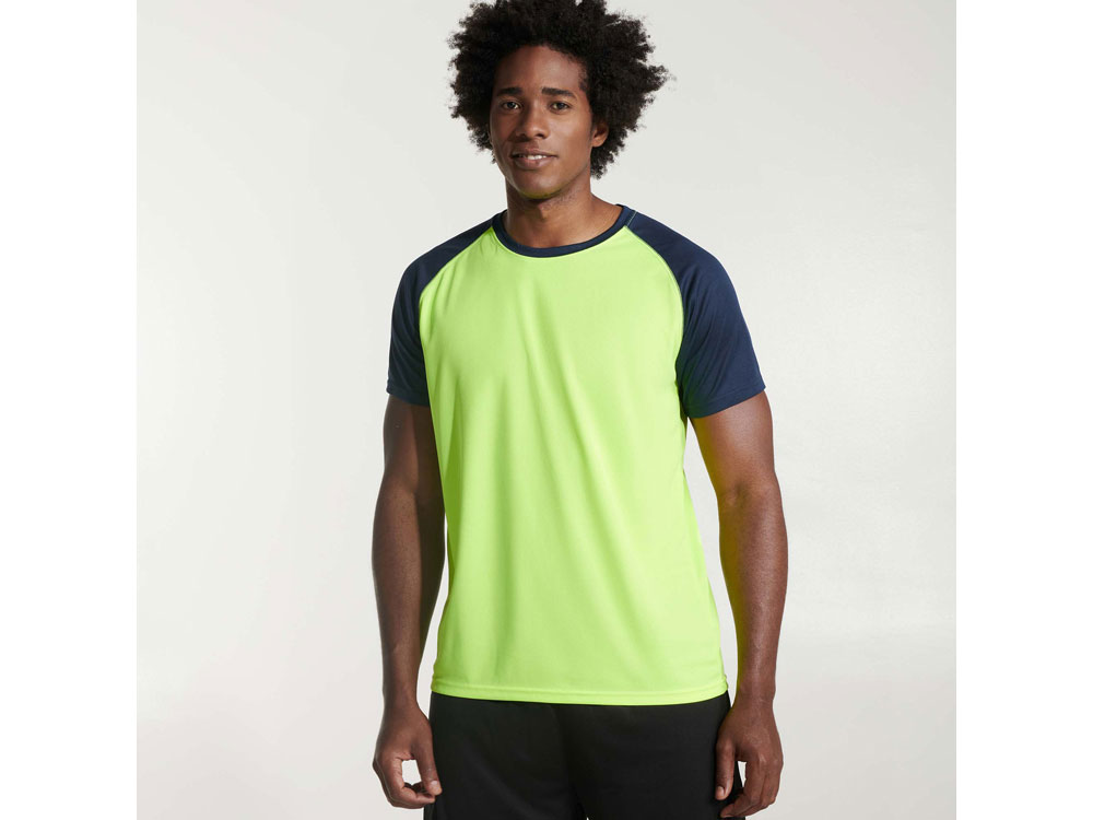 Спортивная футболка с контрастным рукавом реглан. Круглый вырез горловины с контрастной тесьмой. Технологическое дышащее полотно. В ассортименте так же представлена аналогичная детская модель Indianapolis