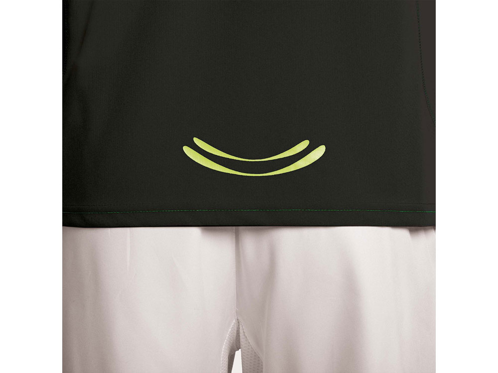 Футболка с коротким рукавом реглан из технологического джерси. Контрастные отстрочки по манжетам, талии, горловине и боковым швам. Дышащее технологичное полотно - легко стирается и быстро сохнет. Светоотражающие детали, за исключением черного и королевского синего цветов, в которых эти детали желтые.