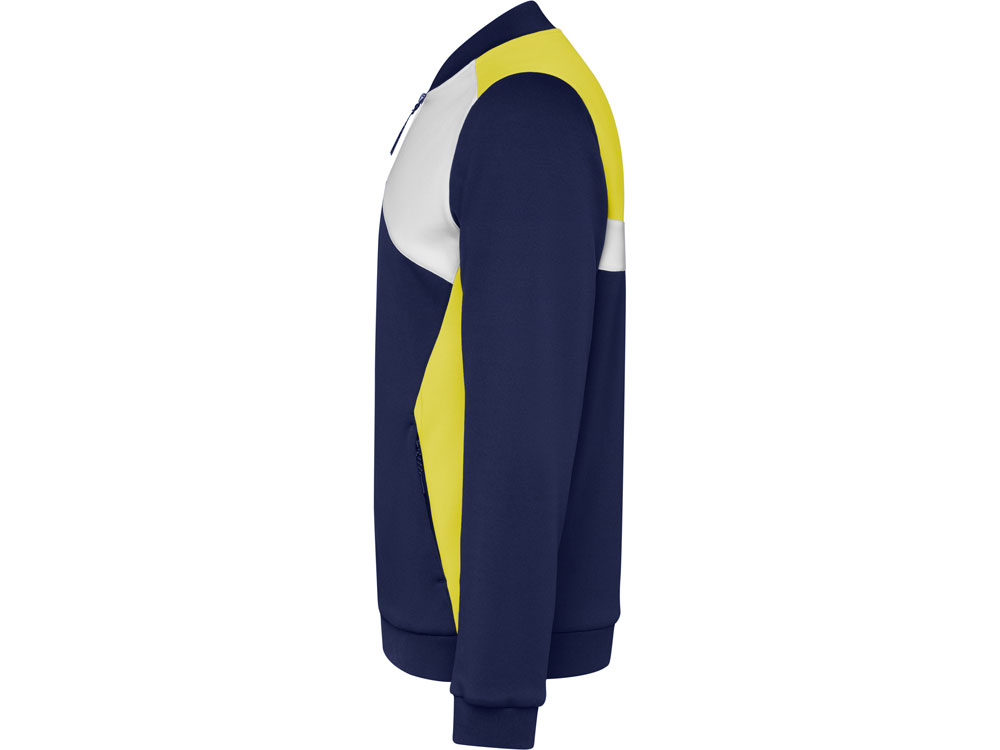 Спортивная куртка на молнии. Боковые карманы закрываются на молнию. Воротник, манжеты и низ из риба 1х1. Ассиметричная левая сторона спроектирована специально для вышивки. Может быть с комбинирована с брюками Rhodes.