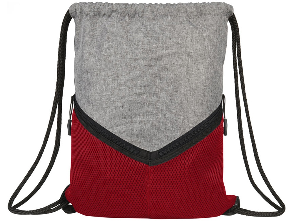 Спортивный рюкзак с застежкой на шнурке, большим основным отделением и двумя сетчатыми карманами на молнии. Сделано с прочной полиуретановой подложкой.