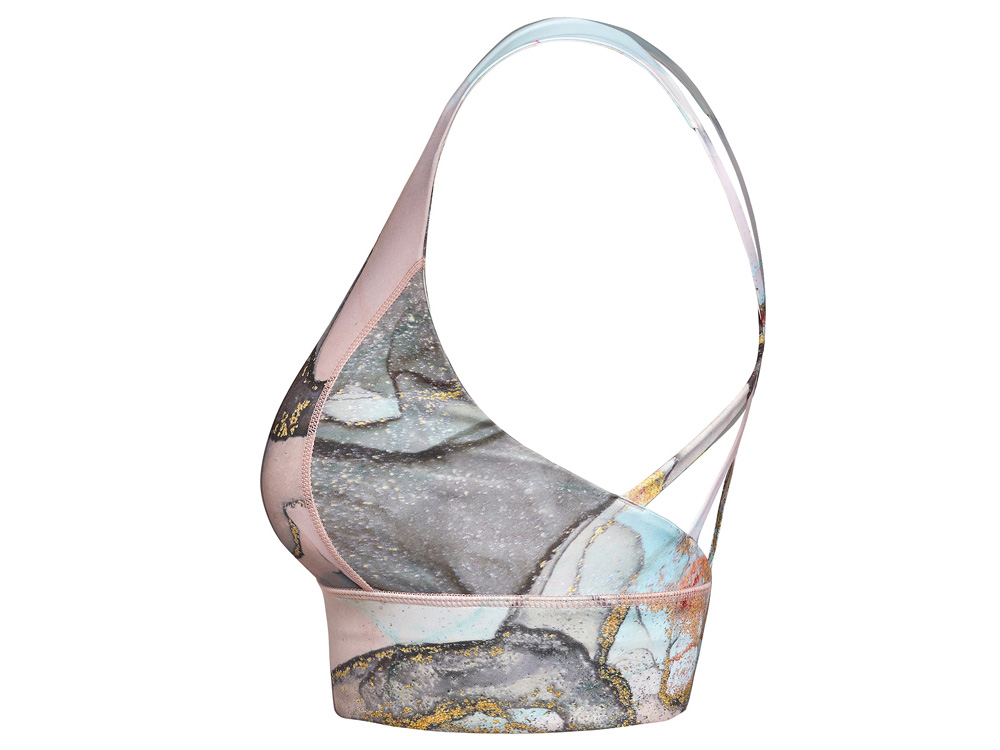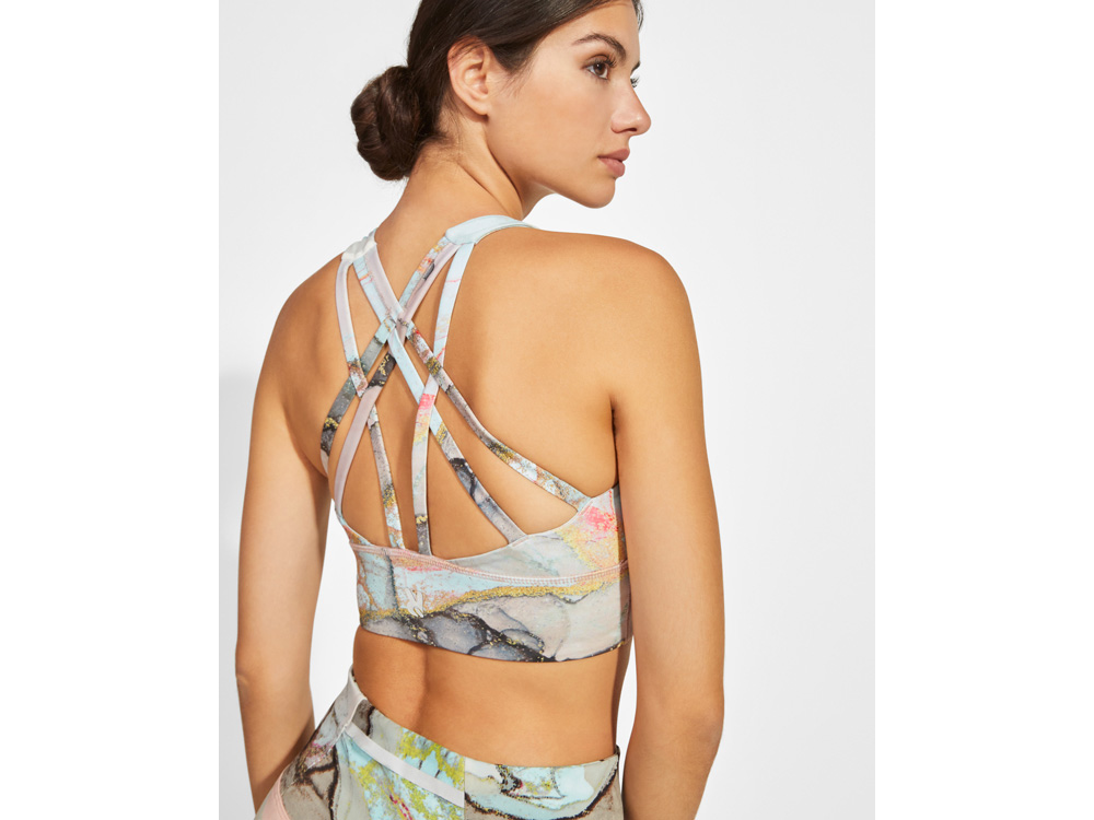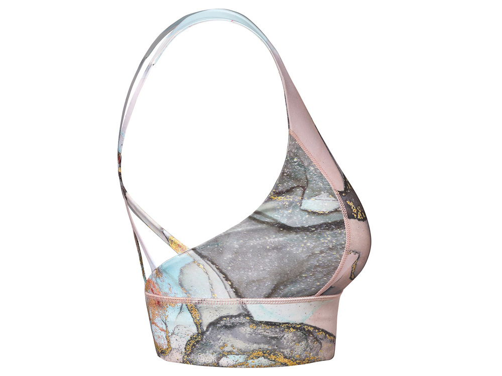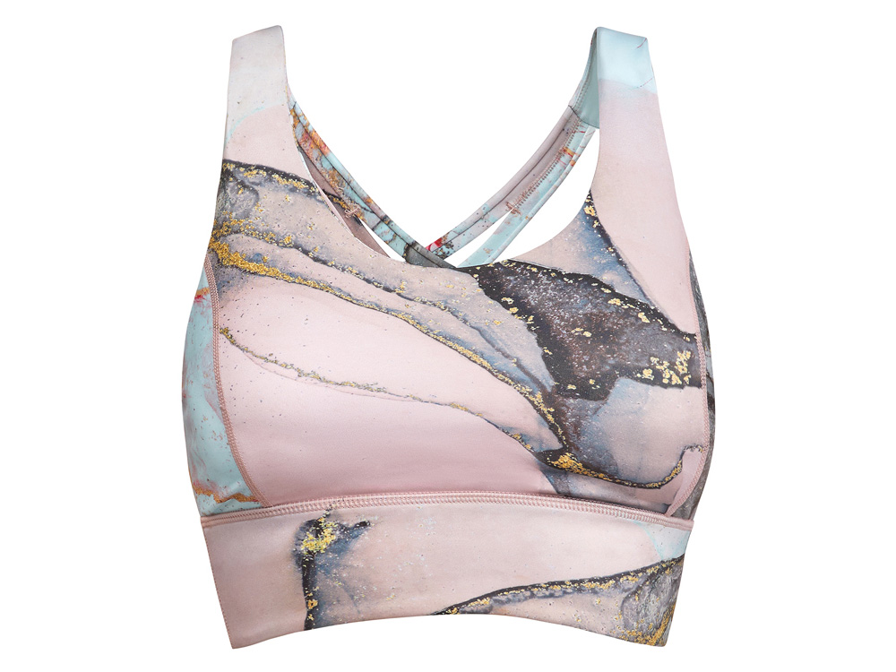 Спортивный женский топ с высокой поддержкой. Спинка·борцовка. Усиленная эластичная резинка под бюстом. Двойная ткань и подкладка. Съемные чашечки. Светоотражающий логотип Roly на спине.