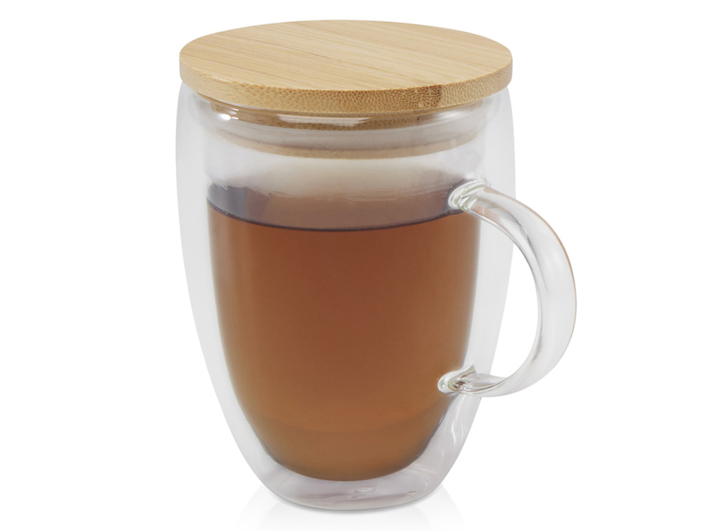 Стеклянная кружка Leona объёмом 350 мл с двойными стенками и стильной бамбуковой крышкой. Она дольше сохраняет температуру напитка, помогает избежать проливов и бережно удерживает его аромат. Идеальный выбор для уютного чаепития или кофе-паузы. Не рекомендуется использовать в посудомоечной машине.