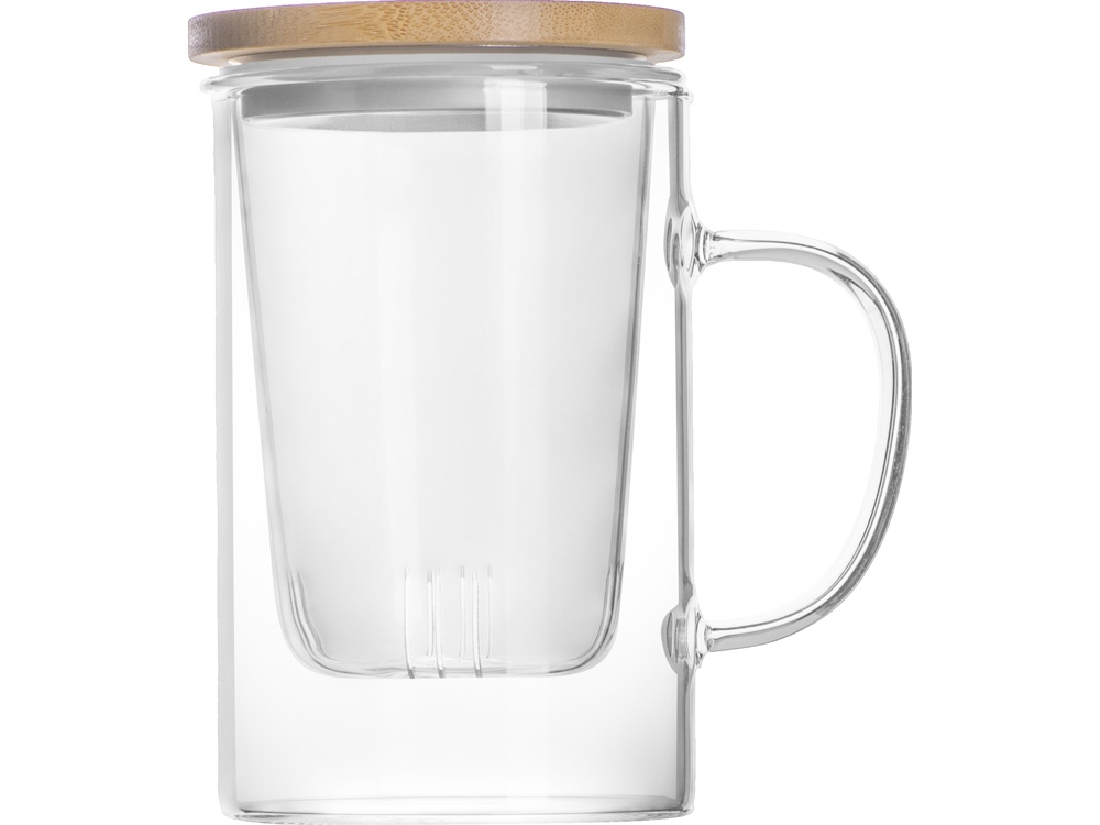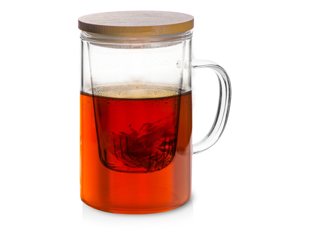 Элегантная стеклянная кружка объемом 400 мл с фильтром для заваривания чая или травяных сборов – идеальное решение не только для дома, но и для офиса. Оснащена удобной ручкой, которая не нагревается от высоких температур, обеспечивая комфортное использование. В комплекте идет стеклянный фильтр и бамбуковая крышка со стальной прослойкой, предотвращающей набухание и трещины. Данная кружка не подходит для мытья в посудомоечной машине.