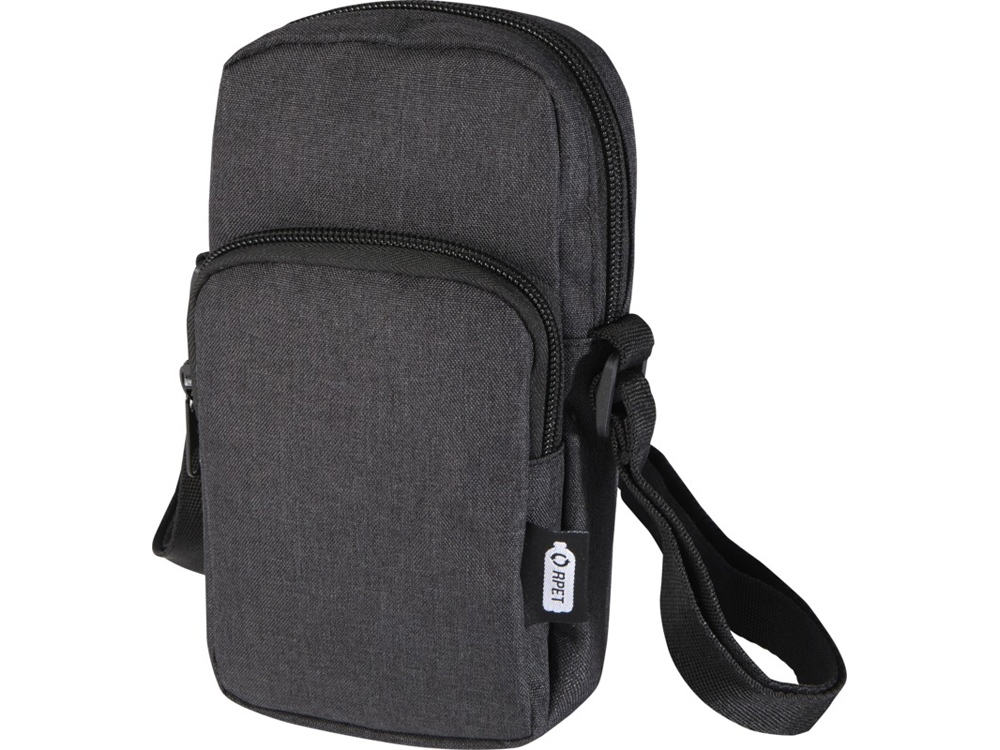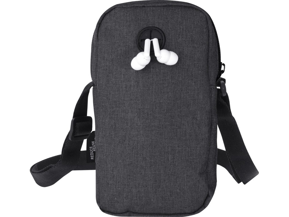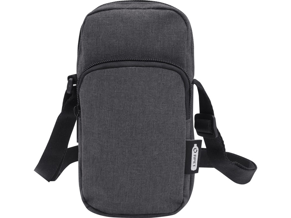 Сумочка для телефона Ross, изготовлена из переработанных материалов, сертифицированных согласно, GRS сохранит ваш телефон в безопасности и всегда заряженным с помощью входящего в комплект портативного зарядного устройства в отделении на молнии. Спереди расположен. карман на молнии для других мелких аксессуаров.Ремень 140 см регулируется по длине, что делает сумочку удобным аксессуаром для гаджетов во время поездок или передвижений по городу. GRS certified recycled polyester.