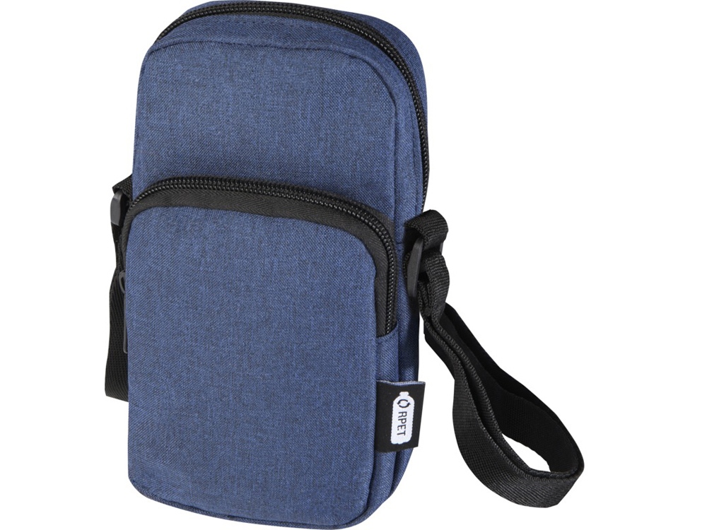 Сумочка для телефона Ross, изготовлена из переработанных материалов, сертифицированных согласно, GRS сохранит ваш телефон в безопасности и всегда заряженным с помощью входящего в комплект портативного зарядного устройства в отделении на молнии. Спереди расположен. карман на молнии для других мелких аксессуаров.Ремень 140 см регулируется по длине, что делает сумочку удобным аксессуаром для гаджетов во время поездок или передвижений по городу. GRS certified recycled polyester.