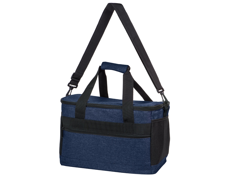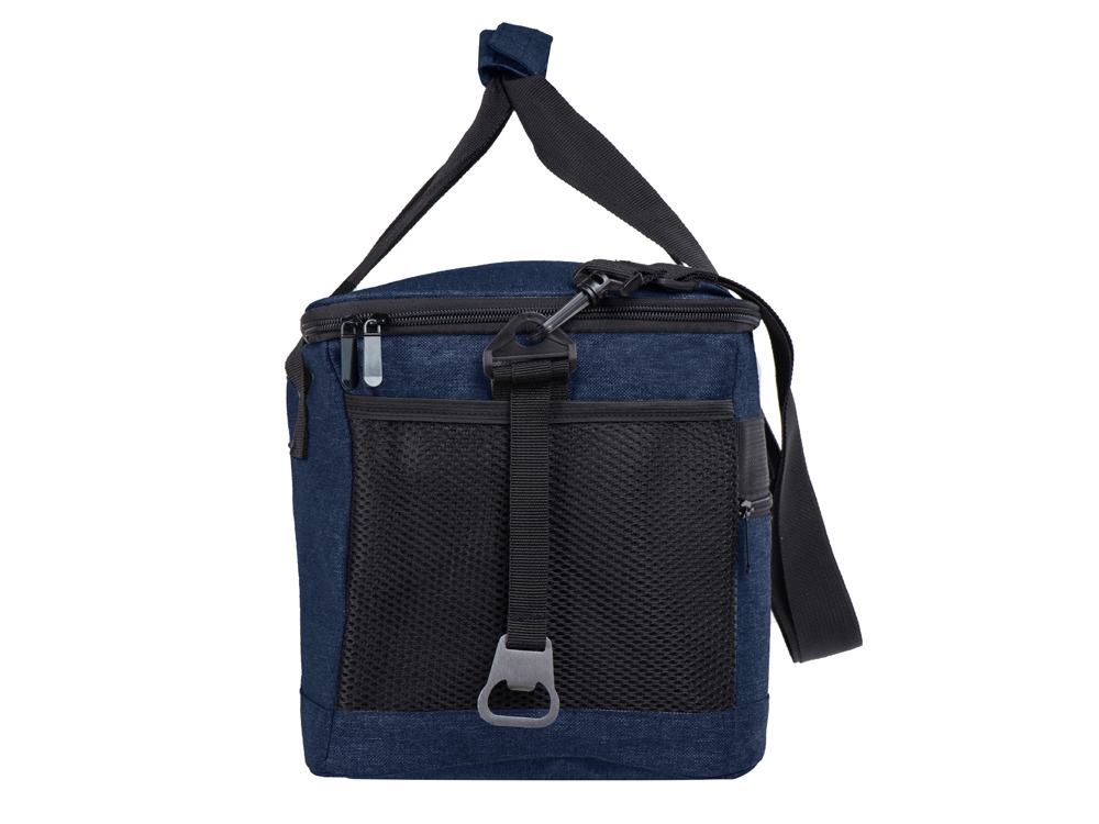 Вместительная сумка-холодильник со специальной конструкцией дна, предотвращающей протекание наружу жидкости от размораживания. Поверхность сумки всегда остается сухой. Основное отделение и карман спереди на молнии. Сбоку 2 сетчатых кармана. Съемный плечевой ремень регулируется по длине. Короткие ручки фиксируются вместе застежкой-липучкой. В комплекте открывалка для бутылок.