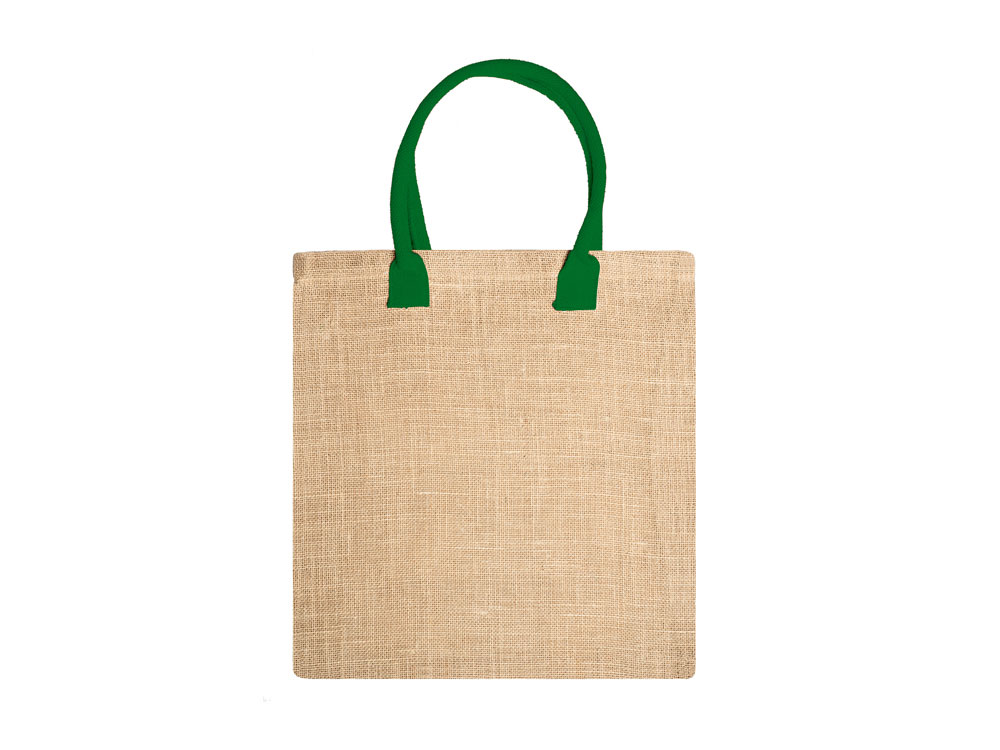 Сумка из натурального джута с усиленными хлопковыми цветными ручками.