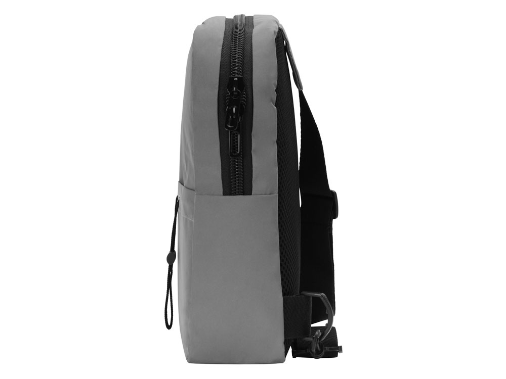 Светоотражающая сумка на одно плечо обеспечит дополнительную безопасность в темное время суток. Внутренний карман на молнии предназначен для хранения ценных вещей. Задняя часть сумки, прилегающая к телу, снабжена дышащей сеткой. Ремень 120 см регулируется по длине.Благодаря возможности менять положение ремня, сумку можно носить слева и справа.