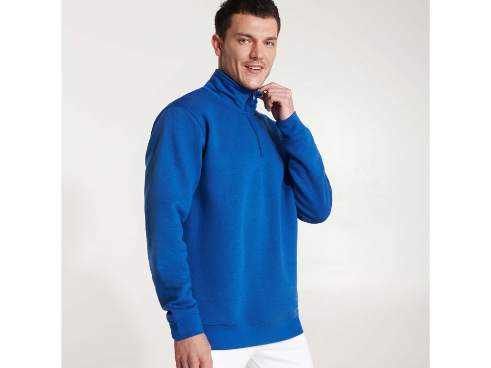 Свитшот ворот на молнии. Горловина дополнительно укреплена тесьмой. По манжетам и низу изделия риб 1х1.