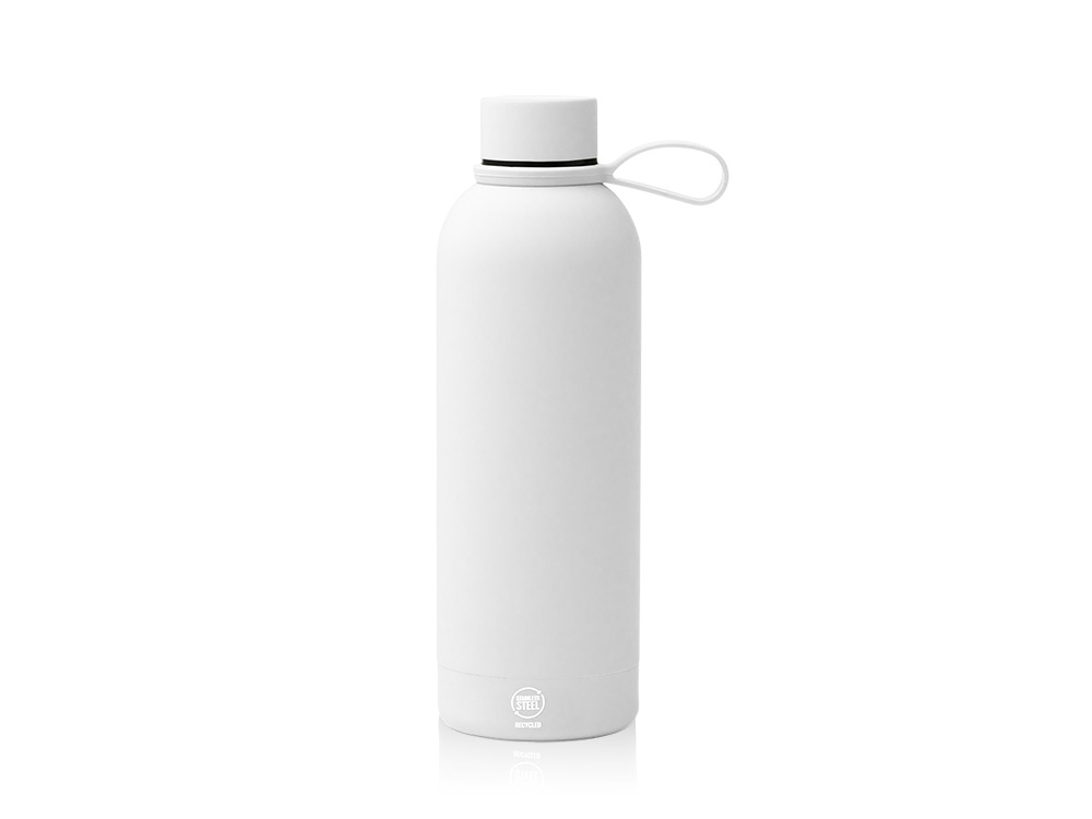 Термобутылка из переработанной нержавеющей стали 304. Мягкая прорезиненная поверхность на корпусе. Удобная силиконовая ручка для переноски. Оснащена противокапельной системой благодаря силиконовому кольцу, встроенному во внутреннюю часть крышки. Крышка и ручка соответствуют цвету корпуса. Объем: 500 мл. - Переработанная нержавеющая сталь 304 - Защита от капель - Нельзя мыть в посудомоечной машине - Поставляется в эко коробке