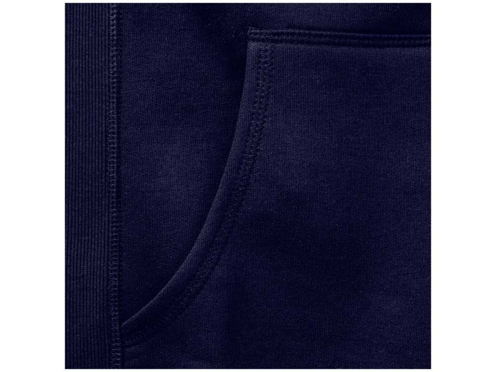 Толстовка Арора с капюшоном и застежкой-молнией на всю длину. Стандартный покрой. Резинка 2х2 на боковых вставках, поясе и манжетах. Карман кенгуру. Мужская и женская модели с завязками на капюшоне. Подкладка внутри капюшона и на спинке под горловиной в форме полумесяце. Атласная лента для укрепления внутри горловины. Принт лого сзади в тон изделия. Серебристые люверсы с лого. Трикотаж: 82% хлопок, 10% вискоза и 8% полиэстер, чесаная внутренняя сторона. 300 г/м².