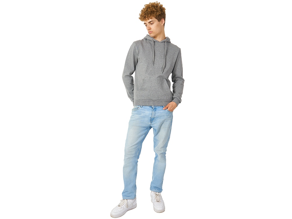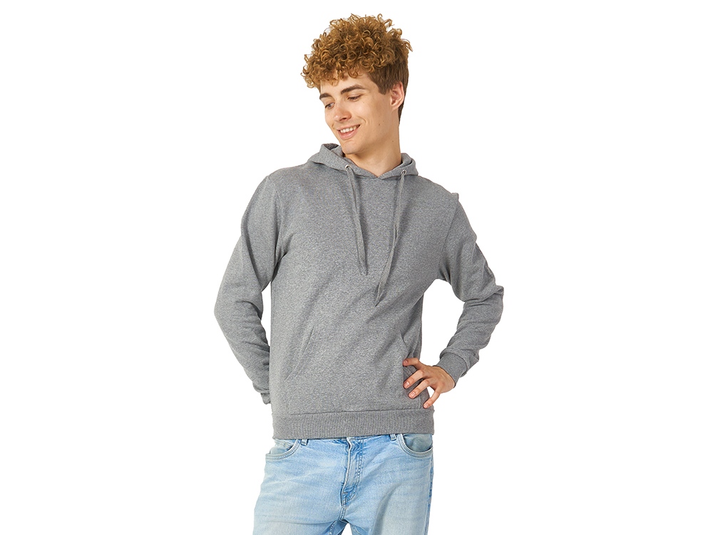 Толстовка с капюшоном (худи) из плотного футера с мягким начесом, с небольшим добавлением полиэстера. Удобная и практичная модель, подходит для прогулок по городу, активного отдыха, путешествий. • Прямой силуэт. • Капюшон с подкладкой в цвет основного материала, металлическими люверсами и плоским шнурком с наконечниками. • Удобный карман-кенгуру. • Долго сохраняет форму и не мнется благодаря небольшому содержанию полиэстера. • Гигроскопичное волокно, обладает хорошими гигиеническими свойствами. • Низ толстовки, рукавов и горловины обработаны рибом (резинкой) 1x1.