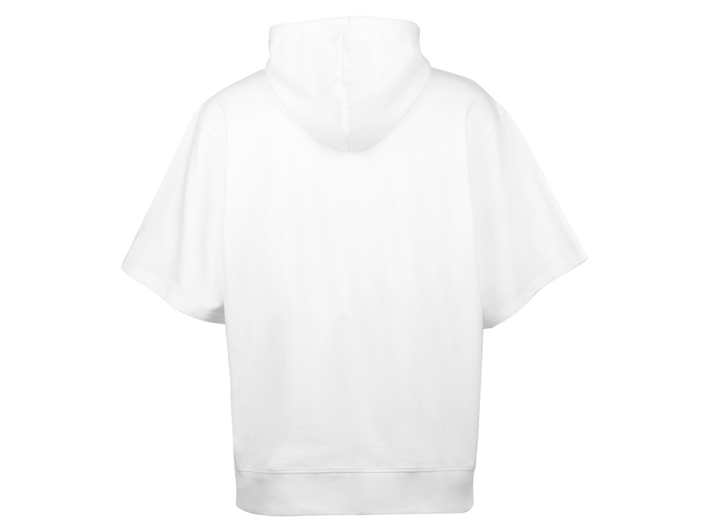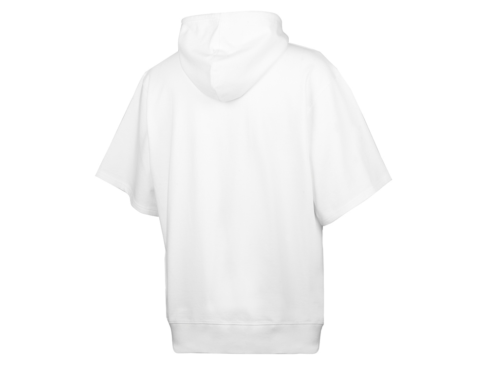 Худи с коротким рукавом выполнено из хлопкового френч терри с петельками на изнаночной стороне. Подкладка капюшона выполнена из основного полотна для объемной посадки. Модель комфортной и актуальной посадки оверсайз отлично подходит для обычной жизни и в качестве промо мерча. - оверсайз посадка - низ обработан рибом 2х2 и дополнительно отстрочен для укрепления - мягкое и качественное полотно френч терри - увеличенная зона для нанесения из-за отсутствия кармана