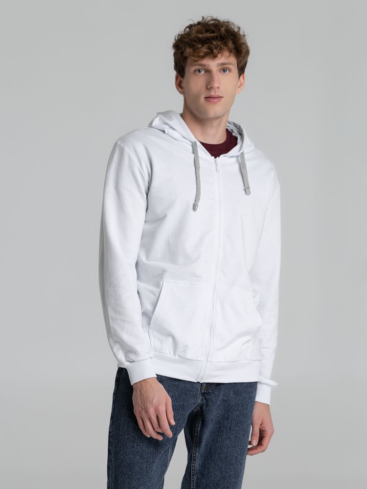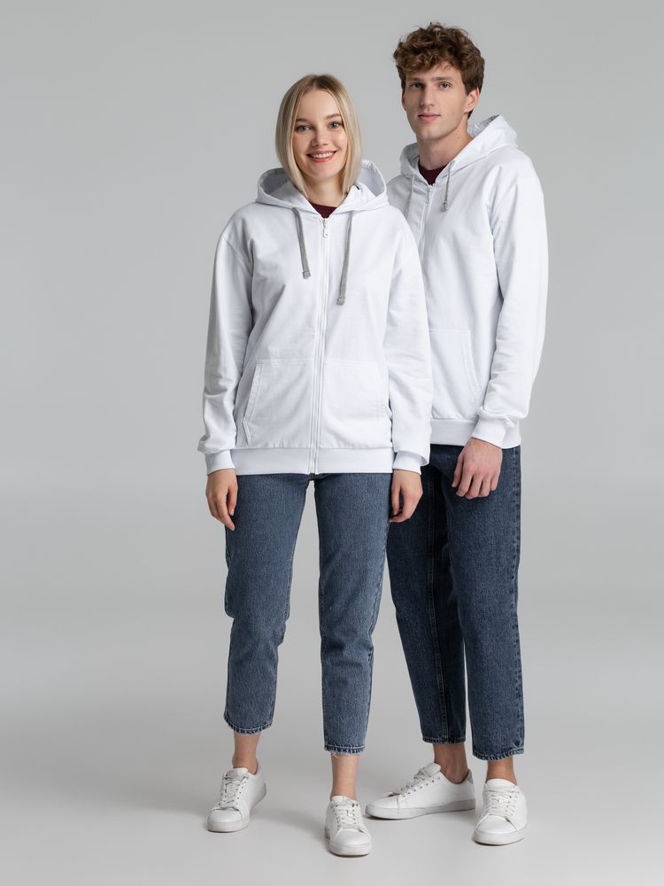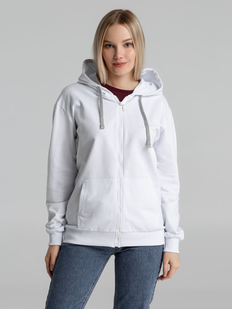Толстовка на молнии с капюшоном Unit Siverga, белая купить оптом и в розницу с нанесением логотипа в Волгограде