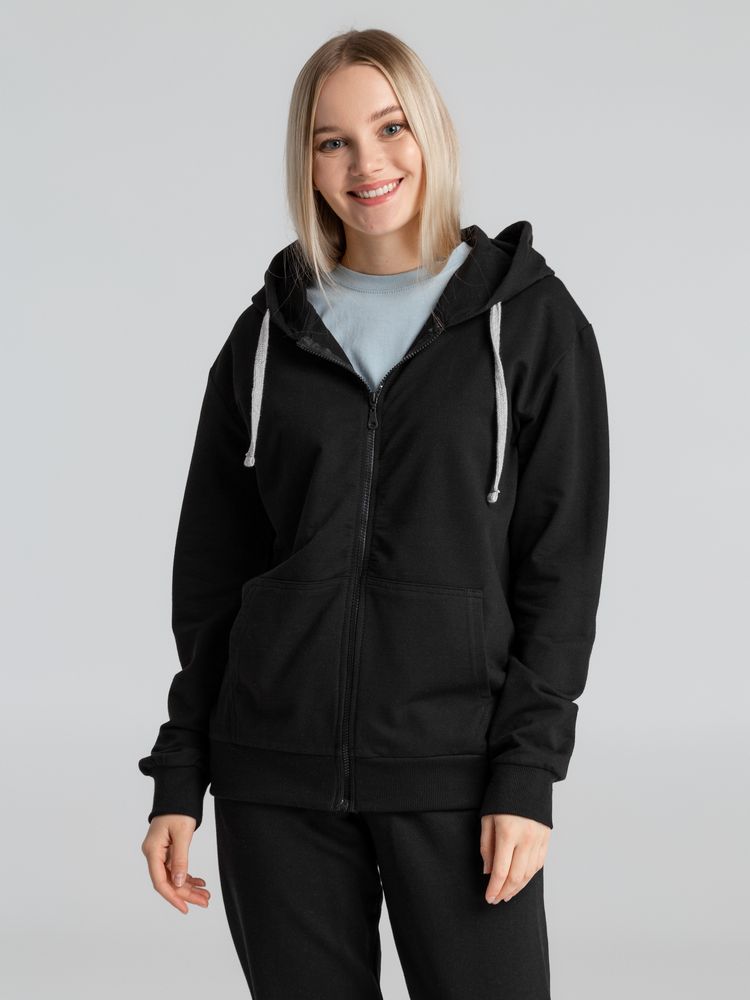 Толстовка на молнии с капюшоном Unit Siverga, черная купить оптом и в розницу с нанесением логотипа в Волгограде