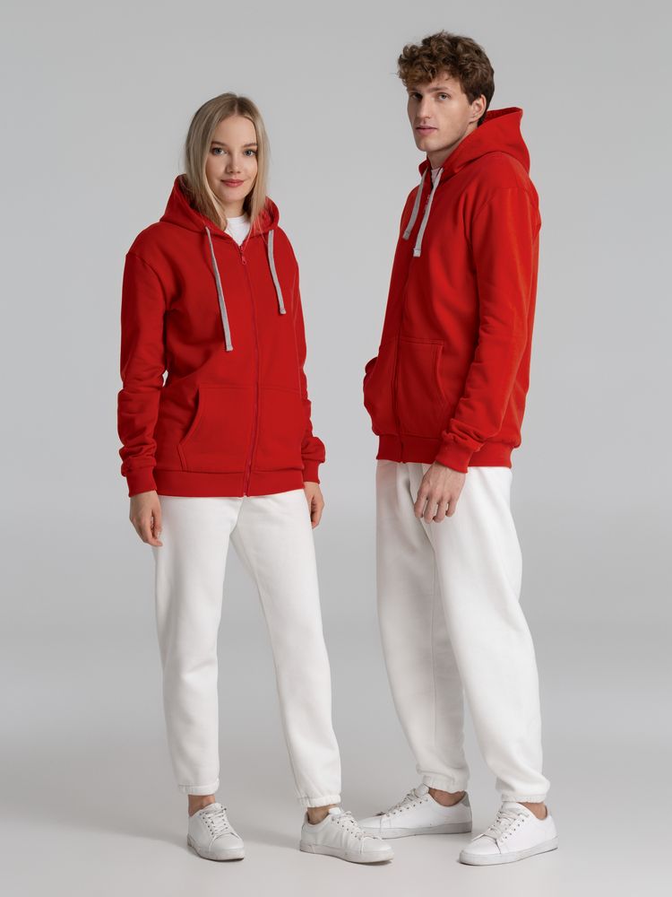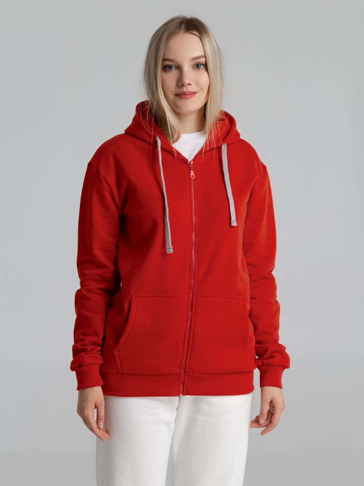 Толстовка на молнии с капюшоном Unit Siverga Heavy, красная купить оптом и в розницу с нанесением логотипа в Волгограде
