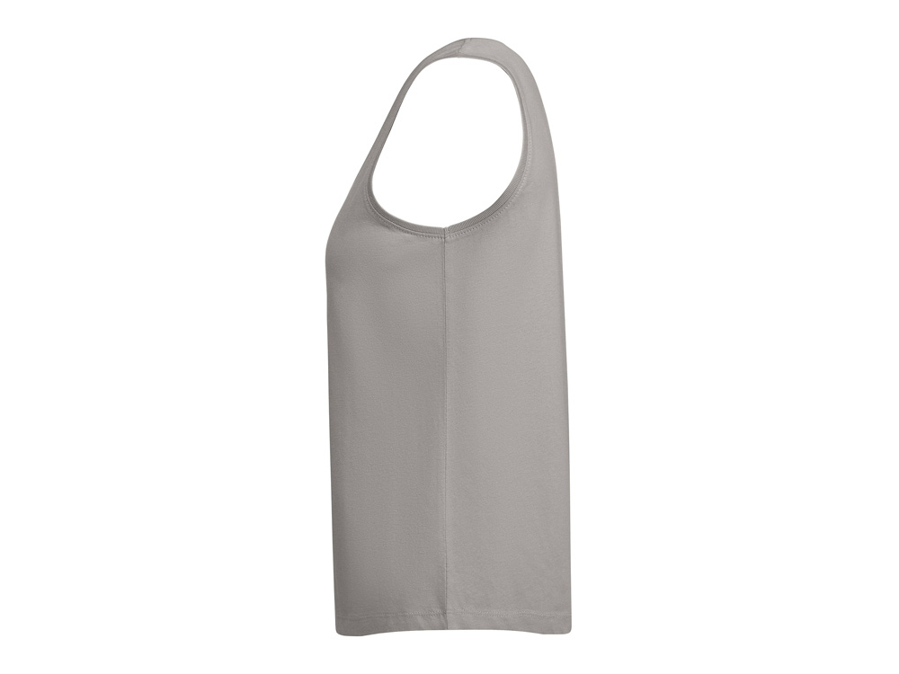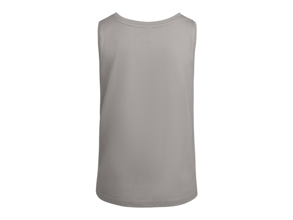 Свободная женская футболка с широкими бретелями. Вырез и проймы обработаны бейкой из риба 1x1. Подол округлой формы. Боковые швы.