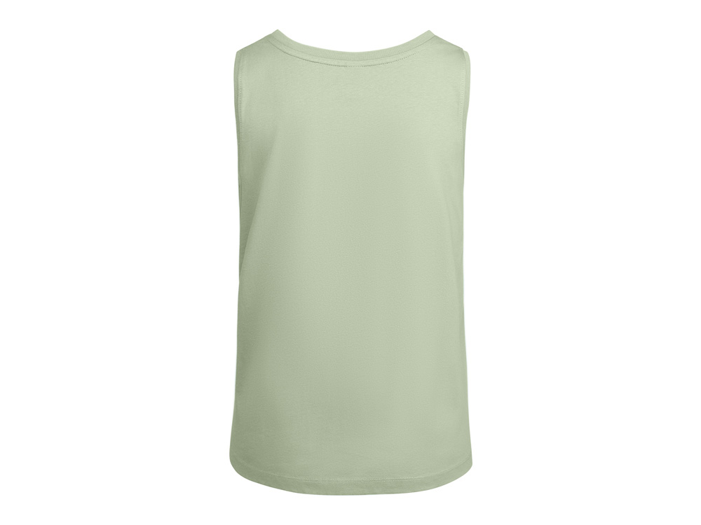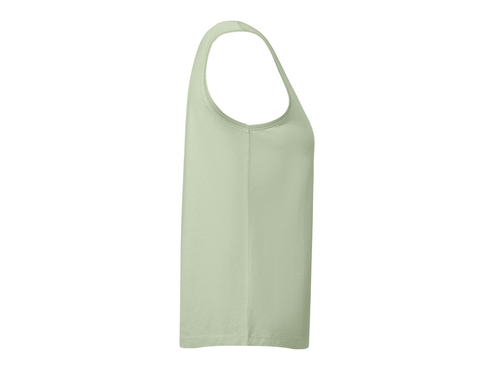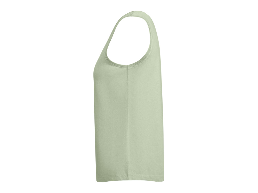 Свободная женская футболка с широкими бретелями. Вырез и проймы обработаны бейкой из риба 1x1. Подол округлой формы. Боковые швы.
