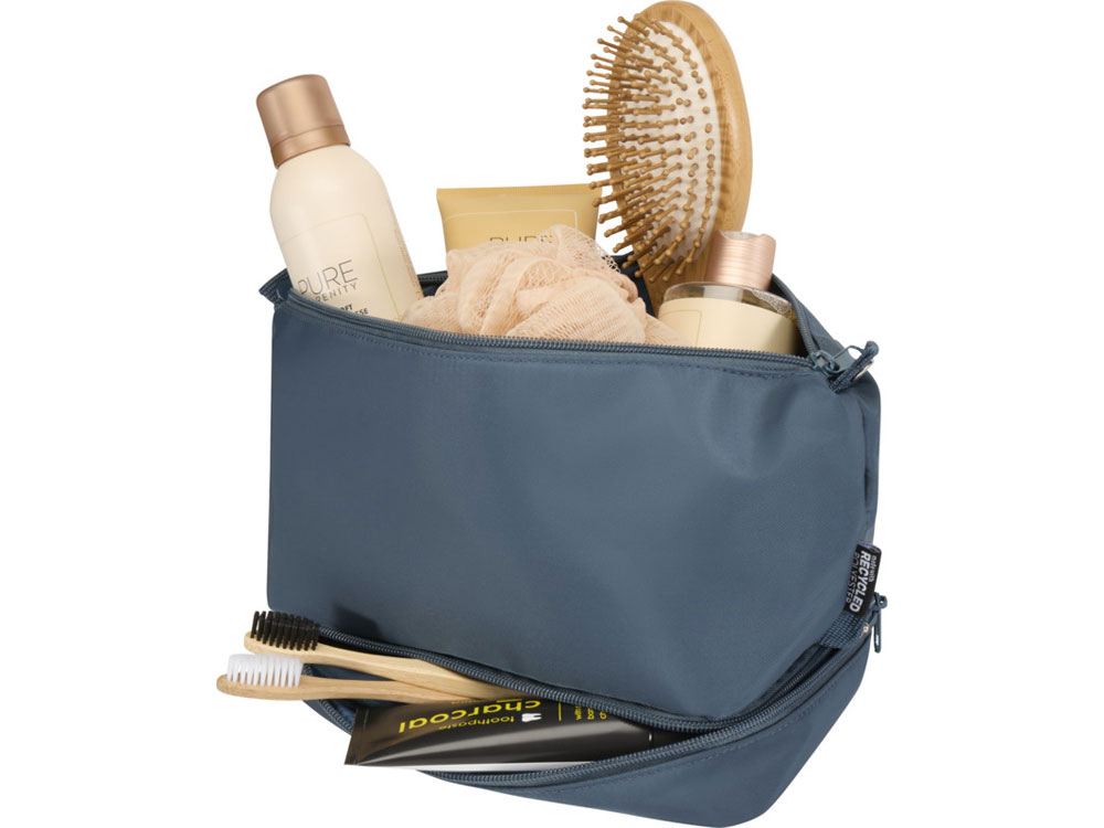 Дорожная косметичка Trip Aware™ из переработанных материалов — это компактная, структурированная сумка, предназначенная для аккуратного хранения личных вещей во время путешествия. Изготовленная из полиэстера саржевого переплетения плотностью 290D с трикотажной основой и подкладкой из материала RPET плотностью 210D/PU, она отличается лаконичным дизайном и практичными отделениями. Основное отделение оснащено внутренним карманом на молнии для мелких предметов, а нижнее отделение в форме раскладушки позволяет разделить предметы первой необходимости для более легкого доступа и лучшей организации. Каждая сумка также поставляется с индикатором Aware™. Эта инновационная функция позволяет пользователям отслеживать происхождение и путь своего товара с помощью QR-кода, повышая прозрачность цепочки поставок и способствуя более прочной связи между продуктом и процессом его производства. Объем: 6 литров.
