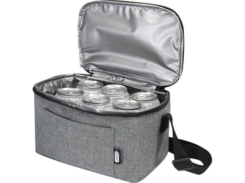 С сертифицированной GRS сумкой-холодильником из переработанных материалов Tundra на 6 банок вы сможете сохранить еду и напитки прохладными в солнечный жаркий день. Сумка имеет основное отделение, открытый передний карман и регулируемые плечевые ремни. Объем: 5 литр. GRS certified recycled polyester.
