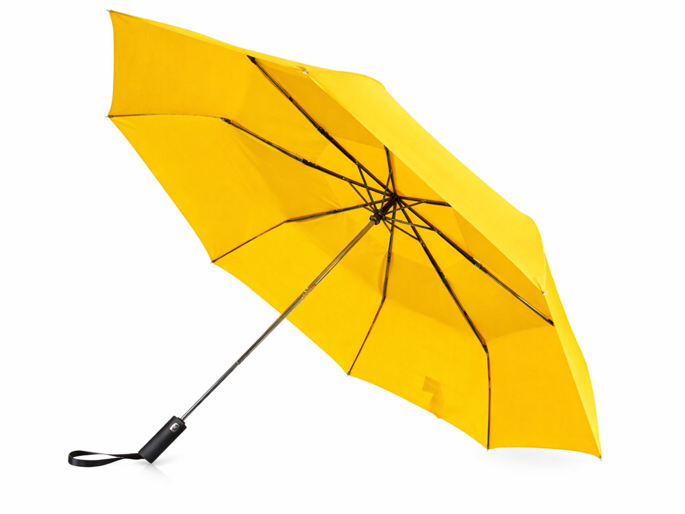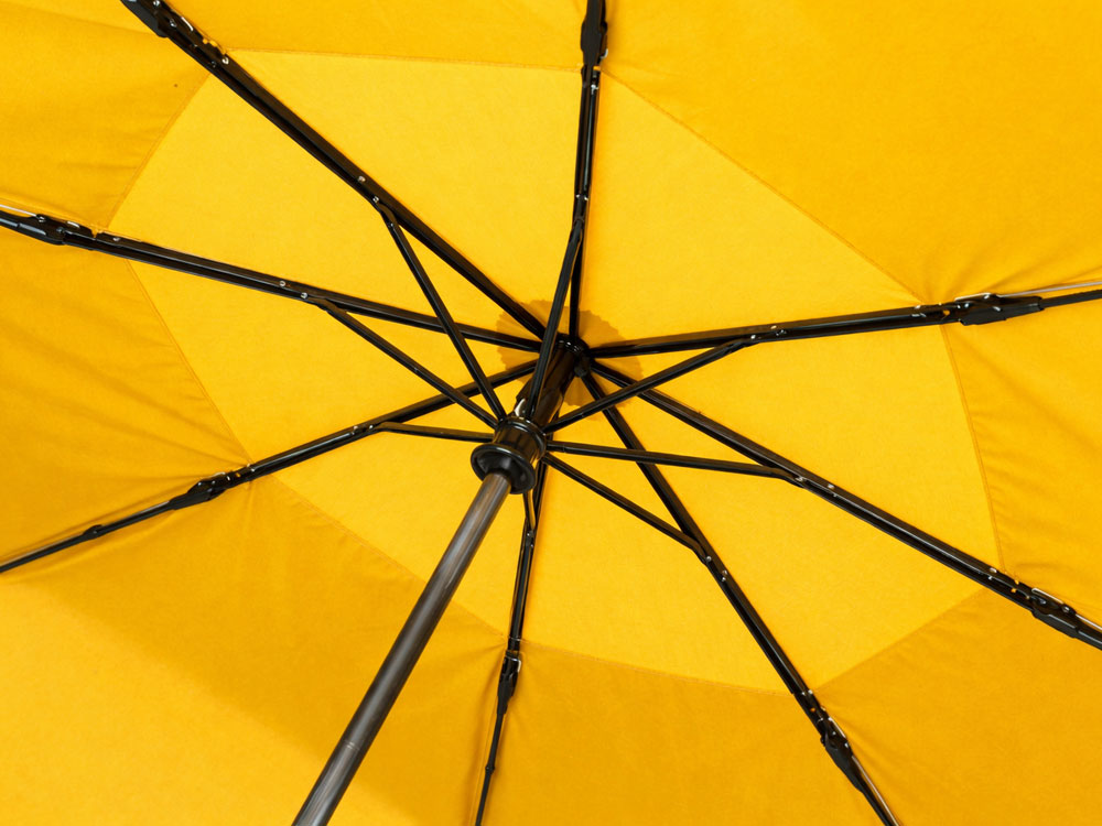 Купол этого складного зонта-автомата состоит из двух полотен и имеет большой диаметр 127 см. Прочный каркас и спицы из стекловолокна устоят при порывах ветра. Благодаря этому зонт служит надежным укрытием в самый сильный дождь. Закрывается в 3 сложения. Ручка обработана мягким покрытием soft-touch. Широкий хлястик для удобства персонализации.