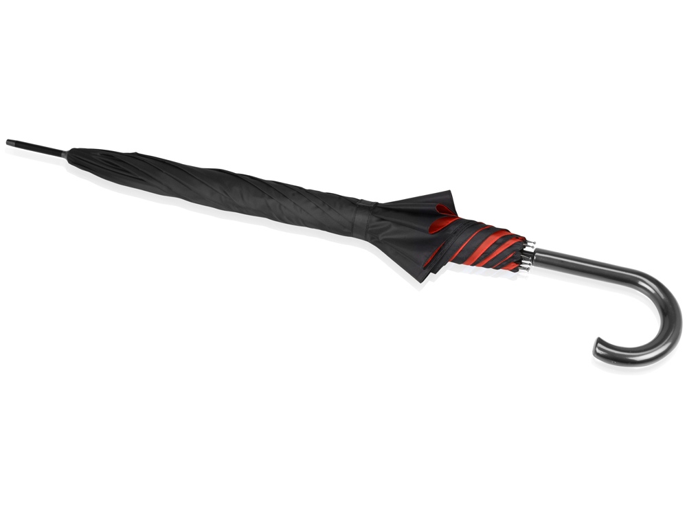 Интересный двухцветный зонт-трость спасет вас от дождя и легкого снега. Внешняя поверхность купола окрашена в черный цвет, а внутренняя имеет яркий, насыщенный оттенок, что непременно привлечет внимание. На купол зонта можно нанести логотип.